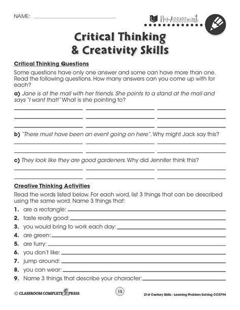 critical thinking and problem solving activities pdf