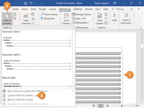 how to create a custom contents page in word
