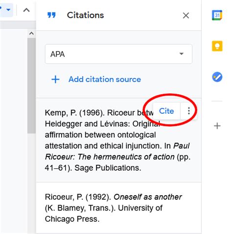 how to insert in text citation in google docs