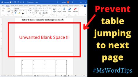 how to keep a table in word from moving