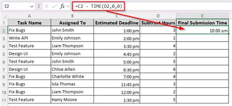 how to subtract hour from time in excel