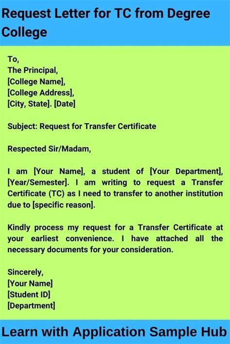 how to write a letter to principal requesting for tc in degree college