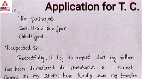 how to write application for tc certificate from school