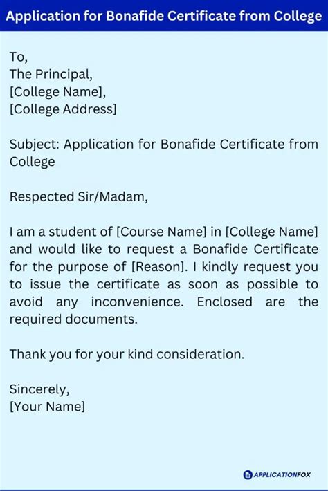 how to write application to get bonafide certificate from college