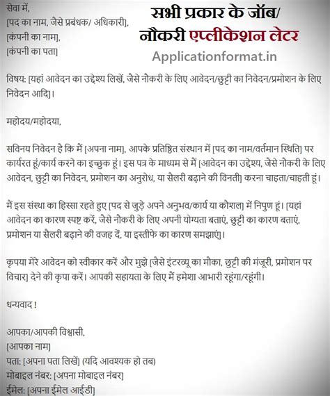 job application in hindi format