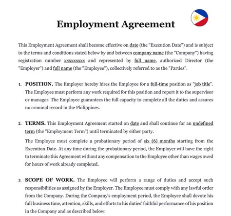 simple employment contract sample philippines